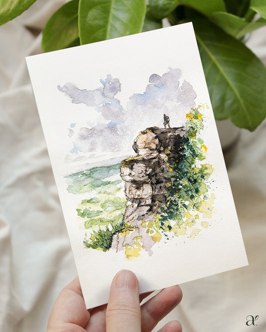 High atop the rock – watercolor sketch