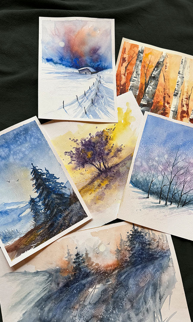Leichte, halb abstrakte Aquarell-Landschaften – kleine Motive, die von Anfang an gelingen und die du direkt mit nach Hause nehmen kannst.